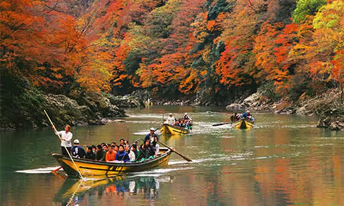 - Du thuyền sông Hozugawa: Trải nghiệm ngắm cảnh thiên nhiên Kyoto từ dòng sông Hozu thơ mộng trên thuyền gỗ truyền thống, sức chứa khoảng 20 - 24 khách.